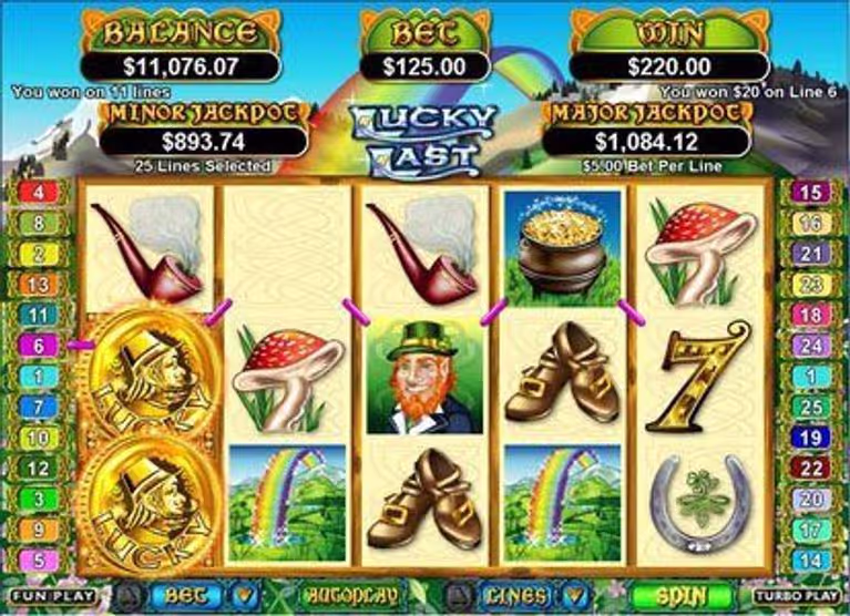 But Lucky Last Slots isn't just about looks - it's also about gameplay and bonuses. This slot machine features five reels and 25 pay lines, which means there are plenty of opportunities to hit that win. And with a betting range of $0.25 to $125 coins per game this game is accessible for all types of players, you don't have to worry about breaking the bank before the rewards start rolling in. And what's more, is that the bonuses and promotions section of this thriller offers a very irresistible twist to this game. There's not one, but 2 wild symbols in this slot, showing up as the golden leprechaun and the shamrock. The lucky leprechaun coin and the golden shamrock can be stacked and substitute for all other symbols except the shamrock scatters. The lucky last scatter is the green shamrock symbol in this game, landing 2 or more of these awards gamers with a payout, and even better, when 5 shamrocks appear you will win 200 times your bet!